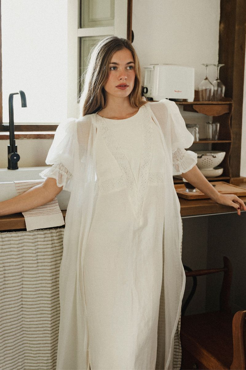El día de la boda es un momento inolvidable, y cada detalle cuenta para que la novia se sienta especial. Un camison blanco largo es una opción perfecta para quienes desean comodidad y elegancia mientras se preparan para el gran evento. Además de ser una prenda sofisticada, el camison blanco largo de Serên Collectionestá diseñado con materiales de alta calidad que ofrecen suavidad y delicadeza. Muchas novias eligen este tipo de camisón porque resalta la belleza natural y brinda una sensación de tranquilidad antes de la ceremonia. El Camisón Filipa, su estilo romántico y atemporal lo convierte en una pieza imprescindible para cualquier novia que quiera lucir impecable en cada momento del día. No hay mejor manera de comenzar una jornada tan importante que envolviéndose en la suavidad y el encanto de un camisón diseñado para ocasiones especiales.
