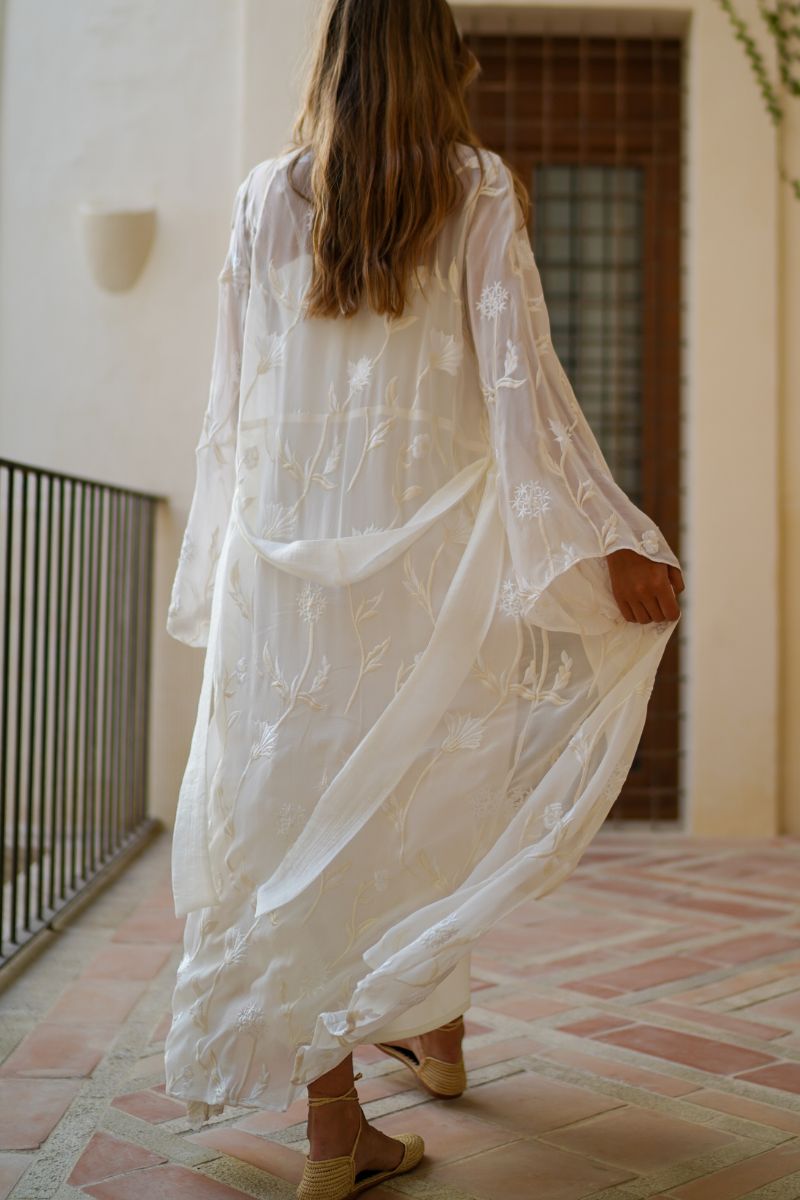 La luna de mieles uno de los momentos más especiales después de la boda, y llevar contigo prendas que reflejen ese encanto es crucial. Los camisones y batas para después de la bodade Serên Collection están diseñados pensando en la practicidad y el estilo, lo que las convierte en compañeras ideales para este viaje. La Bata Irene es una pieza confeccionada en gasa blanca y bordados de flores en blanco y beige, con mangas anchas al estilo japonés. Durante la luna de miel, estas piezas ofrecen una combinación única de comodidad y elegancia, con detalles en encaje, cortes sensuales y telas que se sienten suaves al tacto. Estas características no solo aportan un aire romántico, sino que también crean un ambiente íntimo y especial, donde cada noche se convierte en una ocasión memorable. Con Serên Collection, llevas contigo una experiencia de lujo y exclusividad que transforma los días de la luna de miel en recuerdos inolvidables.