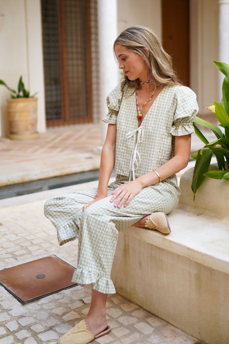 El diseño del pijama verde de Serên Collectiones un homenaje a la simplicidad elegante y al diseño funcional. Cada pieza se diseña meticulosamente para ofrecer cortes precisos y un ajuste que favorezca todas las siluetas, haciendo que cada usuario se sienta seguro y cómodo al usarlo. Los tonos de verde disponibles van desde los suaves pasteles hasta los más vibrantes y profundos, lo que permite una personalización según las preferencias individuales. En la web podrás encontrar el nuevo Pijama Jane Largo Verdoso de dos piezas de pantalón y camisa con detalle de fruncidos en el pantalón y las mangas. Además de un escote ajustable a través de dos lazos del mismo tejido del pijama. Por lo que, la colección ha sido diseñada para ser fácilmente combinable con otras piezas de ropa, haciendo posible que el pijama verde se integre sin esfuerzo en diferentes estilos de atuendo, desde lo más casual hasta lo más chic.